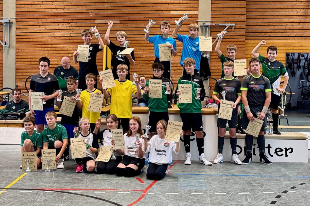 Am 12. Oktober wurde in unserer Halle der Bayernpokal in der Altersklasse U15 ausgespielt. Stein war mit drei Mannschaften am Start. Für Stein 2 (Edwin und Henning) und Stein 3 (Julian und Louis) war es das erste Turnier in der neuen Altersklasse, während Jonas und Anton (Stein 1) bereits das zweite Jahr in der U15 spielen. Gespielt wurde in zwei Gruppen. Alle drei Steiner Mannschaften lieferten sehr stark ab. Stein 1 wurde Gruppenerster vor Stein 3. Stein 2 wurden in der zweiten Gruppe Erster. Stein 1 traf im Halbfinale auf Mömlingen und konnten dieses Spiel klar gewinnen. Im zweiten Halbfinale spielten Stein 2 und Stein 3 gegeneinander, wo sich Edwin und Henning durchsetzten. Das vereinsinterne Finale konnte dann Stein 1 klar für sich entscheiden. Das Spiel um Platz 3 gegen Mömlingen gewannen Julian und Louis. Somit war das Siegerpodest fest in Steiner Hand. Herzlichen Glückwunsch an alle drei Mannschaften zu diesem Wahnsinns-Ergebnis!