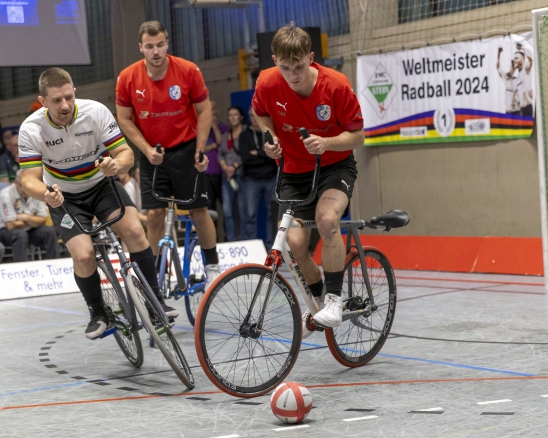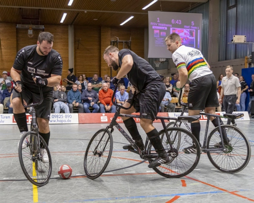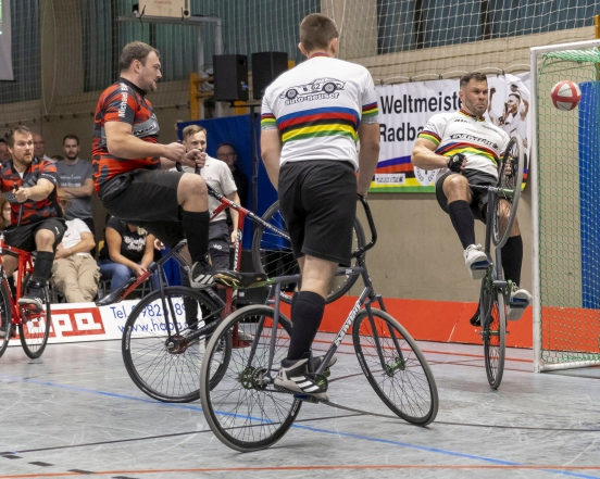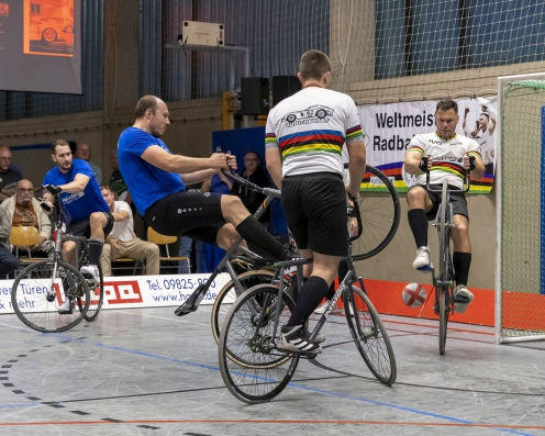Die Erste hatte nur ihren Stolperer gegen die Zweite auf der Negativseite zu verbuchen. Die restlichen Spiele konnten sie mit klaren Kantersiegen für sich entscheiden. Gegen Denkendorf 8:3, gegen Waldrems 8:2 und gegen Großkoschen 11:4. Damit belegten sie den zweiten Platz der Vorrunde und trafen im Spiel um Platz 1 wieder auf ihre Zweite. Die Zuschauer in unserer gut gefüllten Halle gaben zwar alles, konnten der Zweiten aber nicht mehr als sechs Tore in die gegnerische Kiste schreien. Die zehn Tore auf der Habenseite der Ersten brachten Bernd und Rapha dann doch den ersehnten Sieg und weitere Punkte in der WM Wertung. Großkoschen belegte Platz 3 und Waldrems Platz 4.