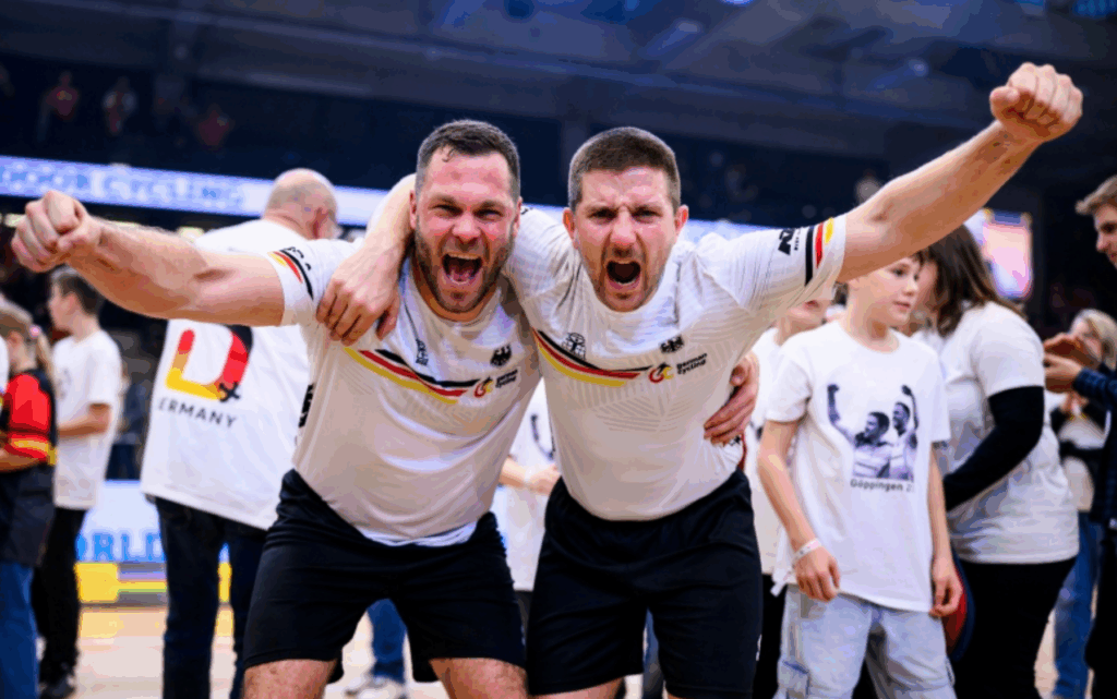 Prestige. Mit einer super Leistung und grandiosen Kombinationen und mit frenetischer Stimmung der Zuschauer zogen Bernd und Rapha mit 5:1 Toren ins Finale ein. Das Spiel um Platz 3 gewann die Schweiz gegen Frankreich. Dann stand als letztes Highlight des Sonntag Abend das Endspiel um die Weltmeisterschaft 2025 an. In der ersten Halbzeit hatten Bernd und Rapha zu kämpfen, dem Druck der Österreicher stand zu halten. Ab der Halbzeit gehörte das Spielfeld ganz den Deutschen. Mit schnellen Kombinationen, brettharten Schüssen und einer grandiosen Torwartleistung von Rapha wiesen sie die Österreicher mit 6:2 in ihre Schranken. Weltmeister 2025. Der Jubel der Fans war unbeschreiblich. Bernd und Raphael krönten ihre Karriere mit dem zweiten, gemeinsamen Weltmeistertitel.