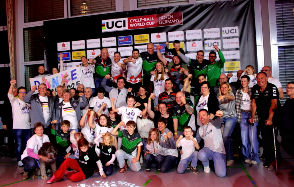 Im letzten Spiel der Vorrunde konnten Raphael und Bernd den dritten der WM aus Altdorf ohne große Mühe mit 5:2 von der Fläche schicken. Natürlich war von unserem Verein ein riesiger Fanblock angereist um das letzte Turnier der Ersten zu verfolgen und beide Mannschaften tatkräftig zu unterstützen. Auch das Banner der WM wurde vor jedem Spiel von Rapha und Bernd wieder stolz ausgerollt und von der Empore herab präsentiert. Nachdem Altdorf 1 und Stein 2 die Vorrunde punktgleich auf Platz 2 abgeschlossen hatten, wurden beide Teams nach beendigung der Vorrunde zu einem entscheidenten Viermeterschießen auf die Fläche gerufen. Nachdem Michi seinen ersten Viermeter versenkt und Robert den ersten der Altdorfer gehalten hatte, sah es gar nicht schlecht aus. Aber manchmal kommt es anders als erhofft. Michi zementierte einen seiner Strafstöße so gegen das Dreieck, dass das Tor wackelte. Leider ging der Ball danach ins Aus. Robert war oft knapp an den Bällen der Schweizer dran, musste aber dreimal hinter sich greifen und den Ball aus dem Netz holen. Mit 2:3 hatten unsere Jungs das Nachsehen und konnten nur noch das Spiel um Platz Fünf bestreiten. Hier unterlagen mit einem knappen 3:4 gegen das Team aus Großkoschen. Die Erste traf im Halbfinale auf die Schweizer Mannschaft aus Mosnang. Vielleicht um die Scharte über das verlorene Spiel beim letzten Worldcup wieder auszumerzen, oder weil sie einfach Bock hatten, zerlegten sie die junge Mannschaft mit einem 11:3 Kantersieg.